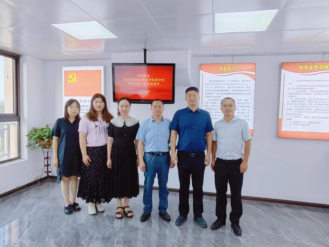 8月22日,Beat365官方网站院长孙勇一行赴郑州金融服务协会开展“访企拓岗促就业”活动,郑州金融服务协会副会长孔祥宇、郑州金融服务协会副秘书长张争利等出席活动,学院相关负责老师陪同参加。