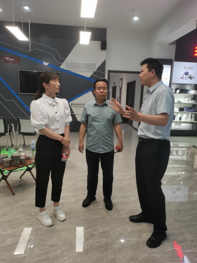 苏云峰一行分别参观了该公司各类实景直播间、电商客服大厅、员工餐厅及员工宿舍。校企双方负责人一边参观,一边深入交流,仔细询问和了解企业人才需求和发展动态。企业负责人表示,希望能与学校进一步加强交流合作,依托企业优势,充分利用教学资源,建立校企深度合作、紧密合作、优势互补、共同发展,达到“共赢”,努力开创校企合作新局面。