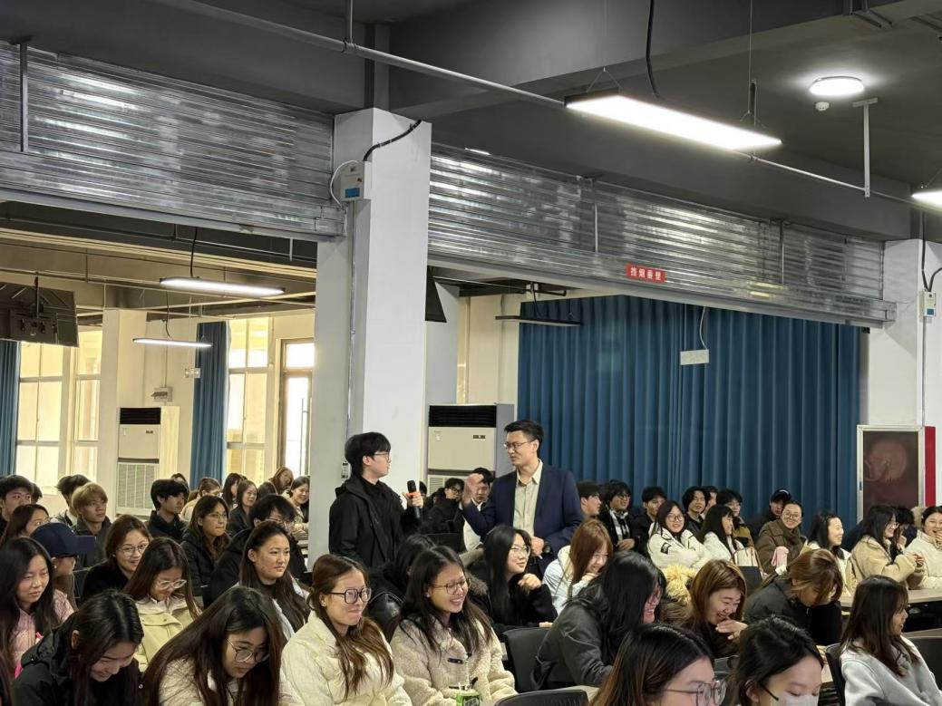 12月1日,郑州奕起游文化传媒有限公司运营总监郭玉杰围绕“抖音本地生活发展趋势和机会”主题分享,结合电商行业现状、核心技能与运营逻辑,以真实案例拆解实操要点。他强调,行业对人才的需求已转向“技术应用+业务理解+跨界协作”综合能力,硬核技能与软性素质同等重要,并结合招聘经验为学生梳理职业路径、提供求职建议。互动环节中,郭玉杰回应学生岗位适配、行业前景等问题,指出抗压能力、耐心和责任心是从业者核心素养,鼓励学生补齐短板。