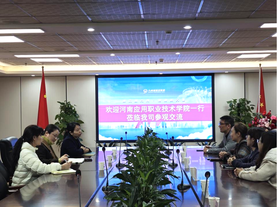 河南九州通医药有限公司企管总监韩孝华对校方一行表示热烈欢迎,全面介绍了企业在医药供应链、智慧物流领域的发展现状、创新实践及人才发展战略,并表达了与学校建立长期稳定合作关系的意愿。