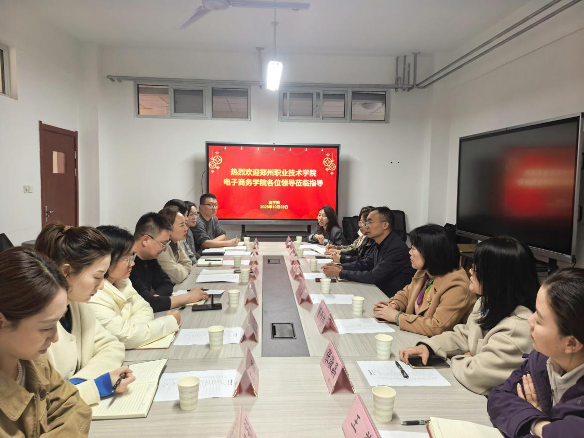 10月24日,郑州职业技术学院电子商务学院院长杨中昭带领教研室主任一行10人到访Beat365官网参观交流,Beat365官方网站院长王珂及相关骨干教师热情接待并开展研讨。
