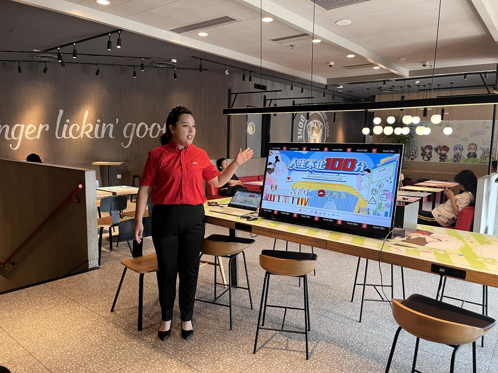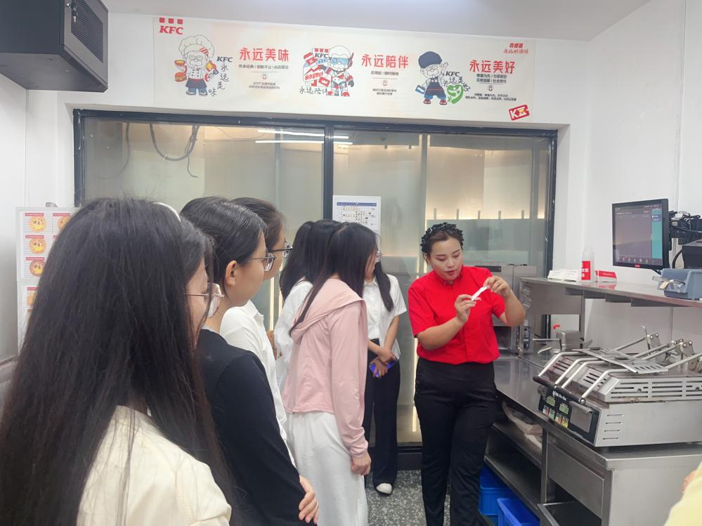 活动以“品牌解码—场景浸润—互动思辨”为逻辑主线展开。在品牌宣讲环节,企业代表解读百盛集团“多品牌协同、全产业链布局”战略,重点阐释肯德基通过标准化培训体系与质量管控机制构建的全流程运营标准;随后,师生深入后厨与前厅,观摩食材管理、烹饪流程及客情服务,通过深入门店运营场景感受现代餐饮的标准化运营逻辑;在肯悦咖啡体验区,学生感受联名营销活动,通过“产品+文化+体验”模式直观感受传统品牌的年轻化营销创新。互动交流环节中,企业代表围绕职业发展与实习待遇展开解答,明确晋升通道与人才培养路径,说明完善的津贴补贴体系及灵活的全省轮岗机制,阐释“商业价值与人文关怀共生”的行业趋势。