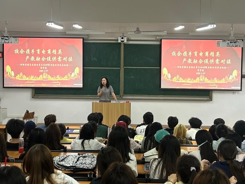杭州璨客电子商务有限公司代表介绍企业业务布局及实践活动安排,企业将提供系统培训,助力学生参与电商核心业务实践,积累实战经验,为深化产教融合、共育技能人才搭建桥梁。