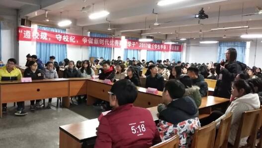 为加强学风考风建设,增强2017级学生的纪律意识,做到守校规懂校纪,规范大学生在校行为,维护学校正常的教育教学活动,保障学生在校的合法权益,商贸学院于2018年1月2日下午14:00在C401举行“遵校规,守校纪,争做新时代优秀商贸学子”2017级《学生手册》知识竞赛总决赛。