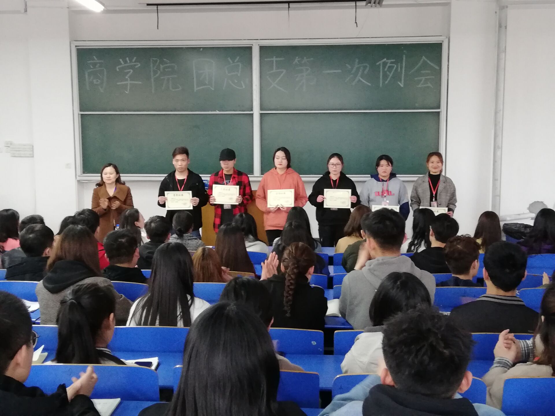 首先学生会主席季宗涵宣读上学期优秀干部,优秀工作者表彰名单,分别由周燕书记、李力老师和董会老师为受表彰同学进行了颁奖。