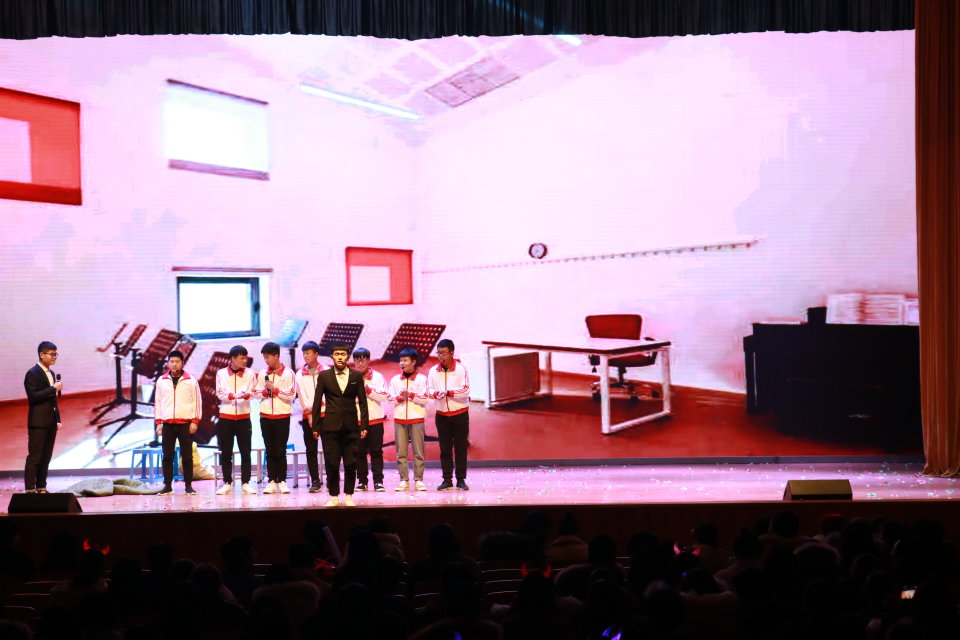 学习部的两位帅哥给全场观众表演了精彩的脱口秀《我不是第一名》,瞬间提起全场的笑点。