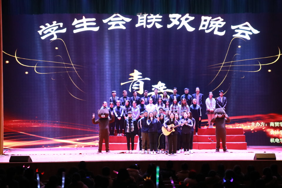 2019年1月1日晚,商贸院学生会联合会计学院和机电学院学生会一起举办2019年“青春”联谊晚会,在Beat365官网礼堂隆重举行。商贸学院书记周燕书记、团总支书记李力老师、以及商贸学院各班级辅导员亲临现场观看了此次晚会。