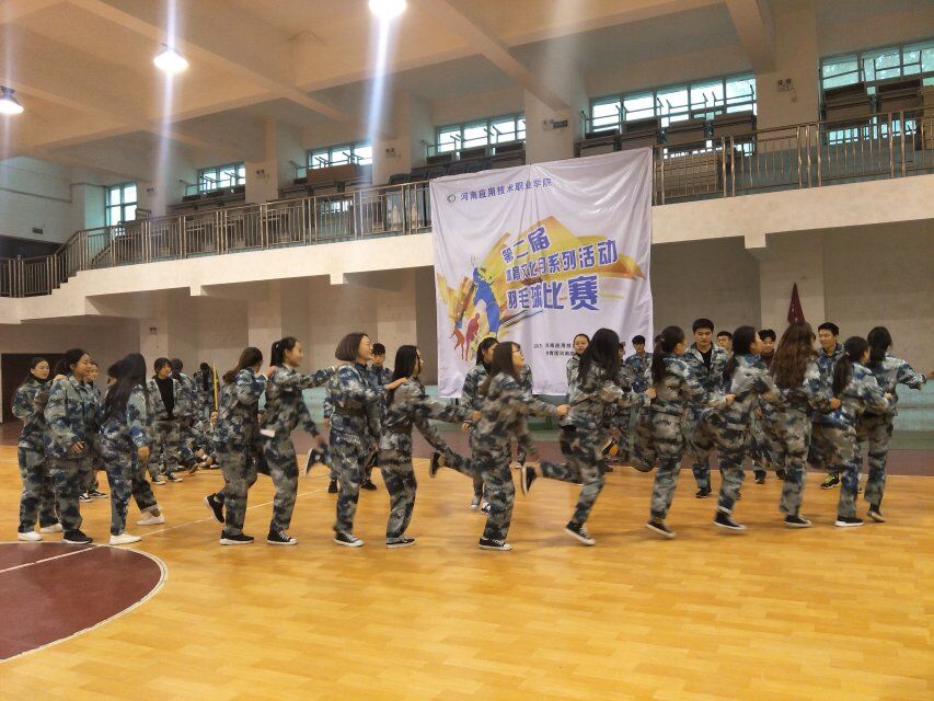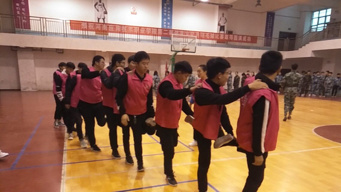 以小组为单位,每队10-12人,成员排成一横排,相邻的人把腿系在一起,一起跑向终点,用时最短的胜出。