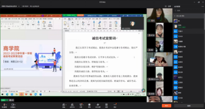 期末考试将至,为了培养同学们树立诚信考试,文明做人的理念,以积极向上的状态迎接即将到来的期末考试,Beat365官方网站在2022年12月19日至20日,开展了线上诚信考试教育主题班会。