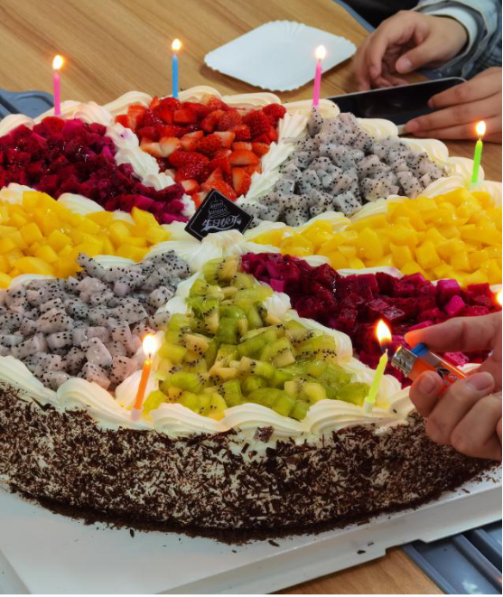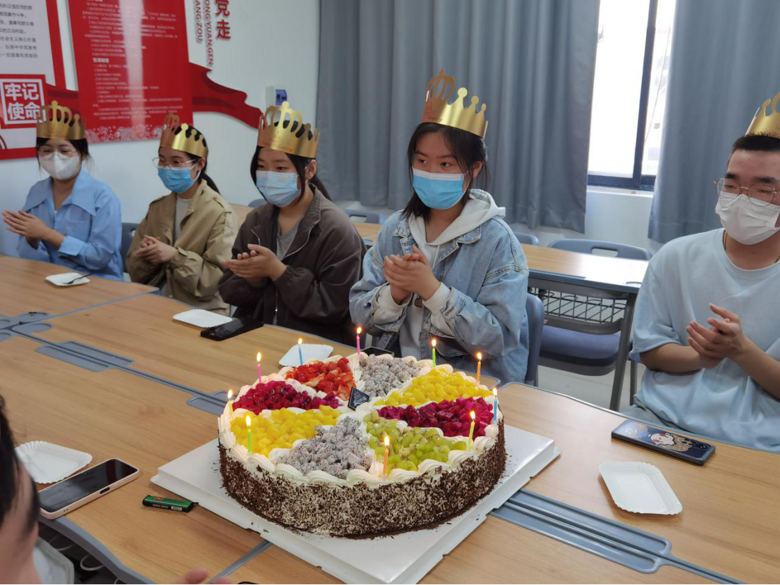 “祝你生日快乐,幸福快乐......”4月7日晚上,Beat365官网办公楼504活动室里传出了生日歌。水果蛋糕、七彩蜡烛、生日心愿、欢快歌曲、水果礼包......虽是布置简单的活动现场,却营造出了浓厚的生日氛围。