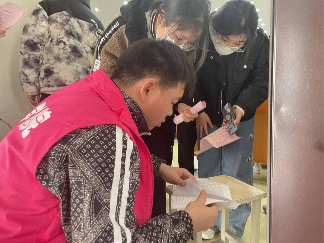 学生会干事们进行信息登记、身份核验