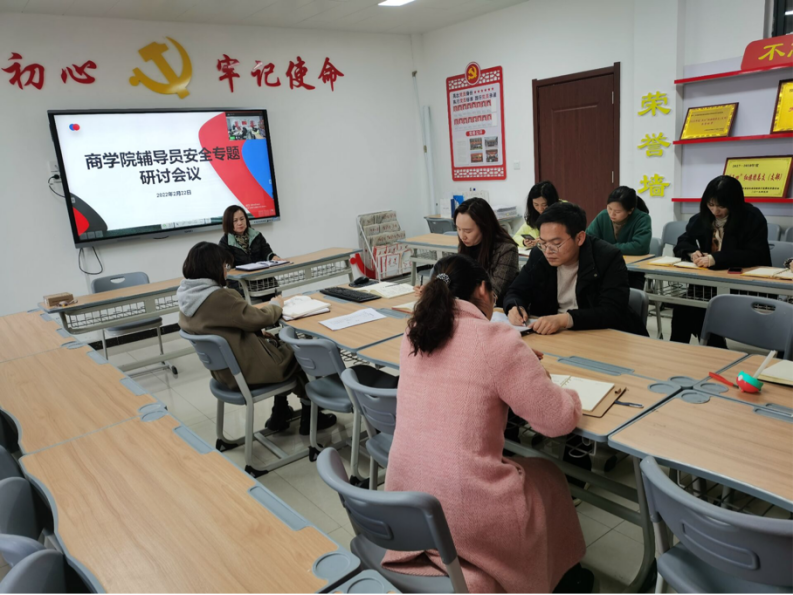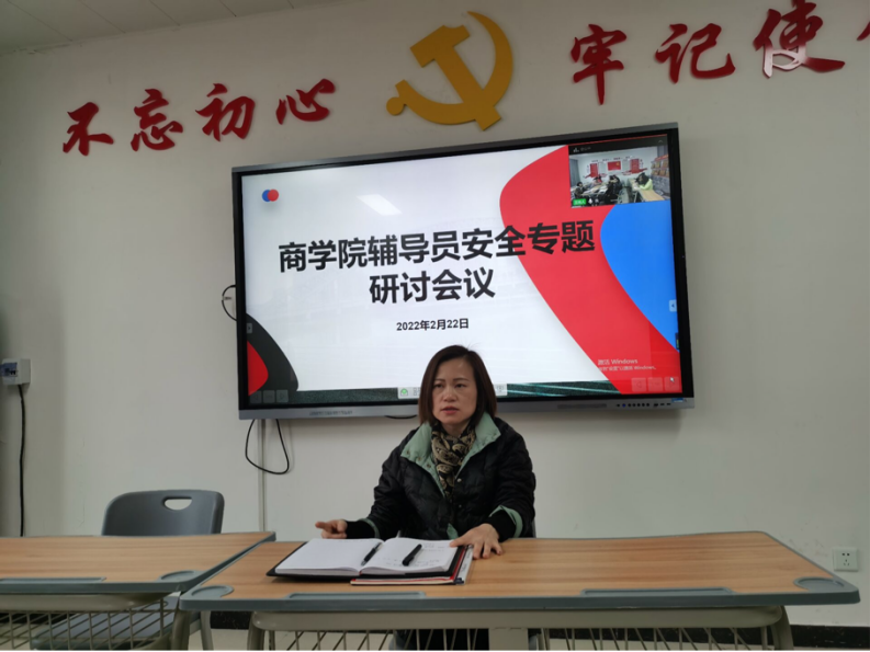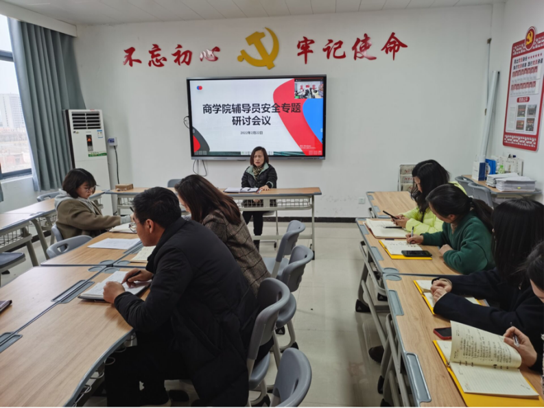 2月22日下午,Beat365官方网站在办公楼504会议室开展安全工作专题研讨会。Beat365官方网站全体辅导员参加会议,会议由党总支书记周燕主持。会议强调,全体辅导员要加强对学生的安全教育,时刻绷紧安全工作这根弦,守护学生校园安全。
