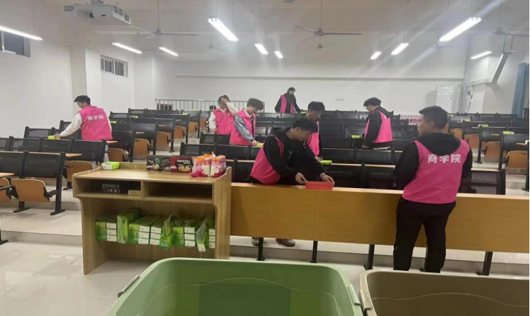 3月31日晚,王倩召开教师及志愿者培训会议,进行详细任务分工,强调次日集合签到的具体时间、地点、着装要求等注意事项,志愿者们提前搬运好饮用水、卫生纸、咖啡、茶包、纸杯等,做好准备工作,让大家提前熟悉流程,以便更好地完成任务。志愿者们在台下认真听讲、专心记录,并提出问题,相互讨论,为第二天的志愿活动做好充足的准备。