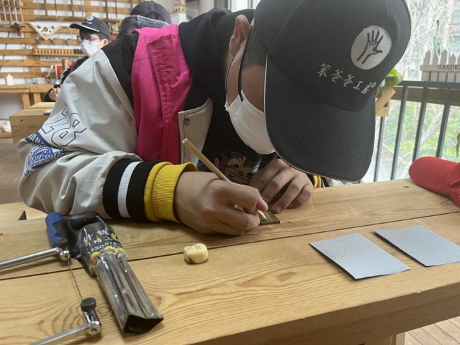 当天下午志愿者们参与了春藤社区的特色手工制作项目,这是一项能培养参与者动手实践能力和创新精神的教育活动。据社区工作人员介绍这些手工作品将作为社区小朋友的日常活动奖励奖品,经过近两个小时的手工操作,志愿者们纷纷完成了手中的作品并在上面刻上了自己美好祝福,大家脸上都流露出满满的成就感。