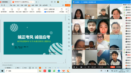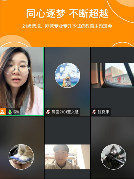 (跨境、网营专业专升本诚信教育主题班会截图)