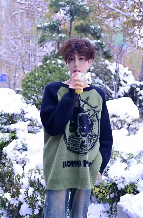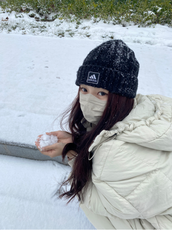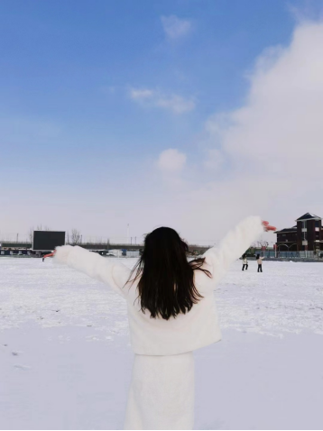 在风雪中,她如同一朵独舞的花,人与雪景相映成趣,灵动而优雅。