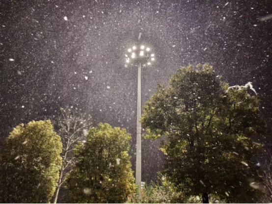 雪花在路灯下无声无息地飘落,把整个夜晚都变得温柔、安宁,让人们舒服地沉浸其中。
