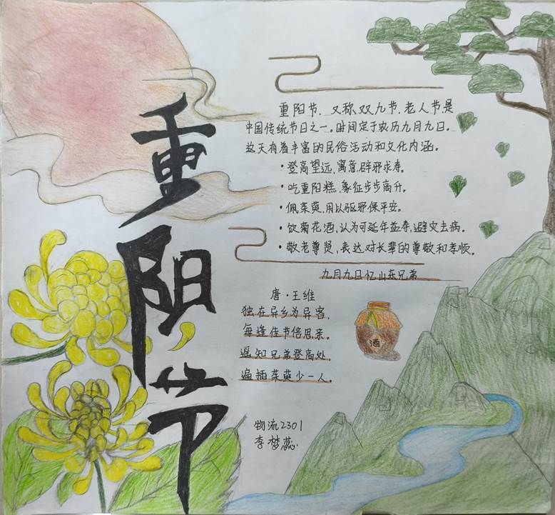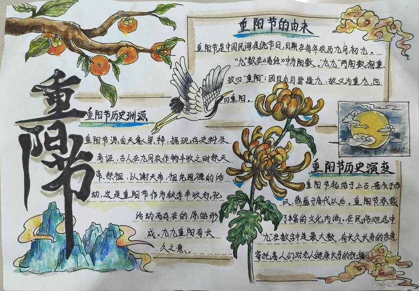 活动中,同学们纷纷发挥自己的创意和才华,以重阳节为主题,精心设计和制作了内容丰富、形式多样的手抄报。在创作过程中,同学们不仅加深了对重阳节文化的了解,也锻炼了自己的设计能力和艺术修养。