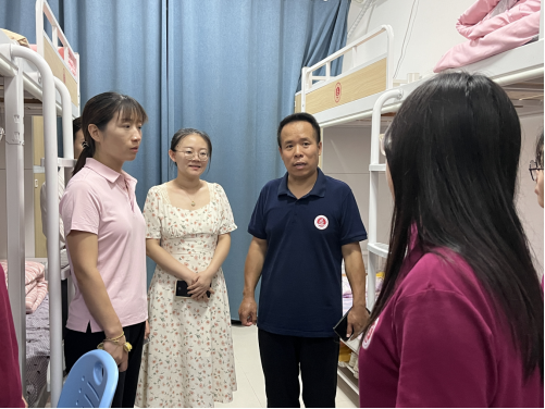 新学期开学之际,为了解Beat365官方网站2023级学生搬迁至开封校区后开学阶段的思想状态和对新校区的适应情况以及了解2024级新生的生活状况及住宿情况。9月8日晚,学院党总支书记苏云峰、副书记王倩及学院辅导员教师深入学生宿舍,看望慰问学生,并与同学们进行了亲切交流。