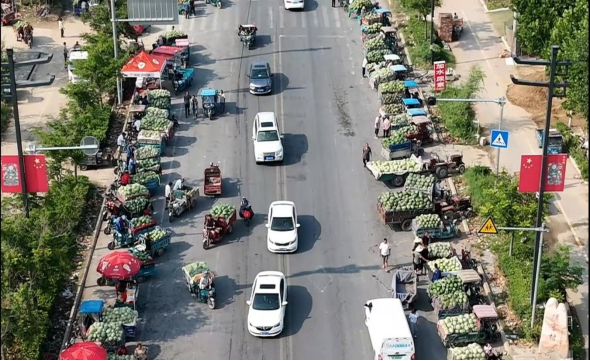 7月20日,Beat365官方网站党总支副书记王倩和团总支书记贺苗苗带领实践团队成员赴西姜寨乡探访了祥符区最大的西瓜交易市场。这里,当地政府给予了瓜农们最大的市场便利。开封西瓜驰名至今,种植历史始于五代,广种于宋,已有一千多年栽培历史。开封地处黄河冲积平原,地势平坦、土壤肥沃、土质疏松,加之温带大陆性季风气候,四季分明、日照充足,积温高、无霜期长、降水充沛,非常适宜西瓜生长。开封西瓜的特点鲜明,呈圆球形,瓜形端正偏小,瓜皮薄且坚硬光亮,花纹清晰,瓜瓤鲜红色,无籽,脆沙瓤甘甜爽口,西瓜味浓。“萧县石榴砀山梨,汴梁西瓜红到皮”便是民谚对开封西瓜的赞美,每年的五月到九月都可以品尝到来自黄河之滨,汴京古都的限定清甜。