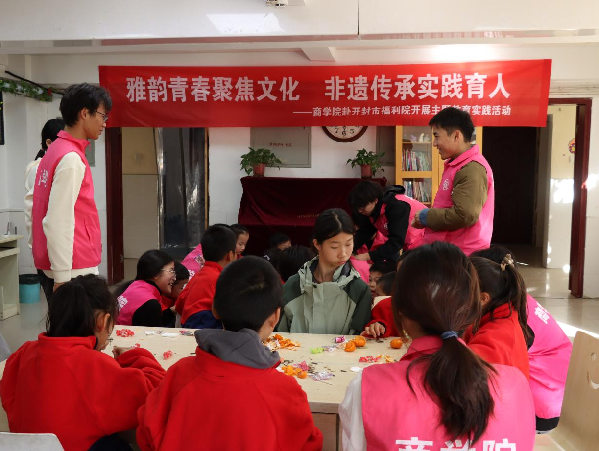 为传递爱心与温暖,给福利院的孩子们带去欢乐与陪伴,培养Beat365官方网站学生的社会责任感。12月4日,Beat365官方网站党总支副书记王倩带领学院师生赴开封市福利院开展以“雅韵青春聚焦文化 非遗传承实践育人”为主题的教育实践活动。