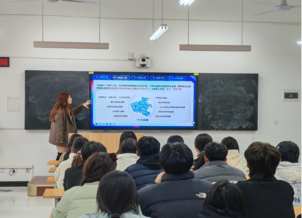 随后,网营2202班梁子玉同学为大家分享了自己的参赛作品和比赛经验,梁子玉2023年获河南省职业生涯规划大赛总决赛成长赛道职教组银奖,她以自己的亲身经历为蓝本,生动地讲述了参赛过程中的点点滴滴。并从备赛准备、赛场应对等环节对职业生涯规划大赛进行了深入浅出的讲解,在她的鼓舞下,同学们纷纷表示会积极把握好这次机会,将最佳的状态展现到比赛当中。
