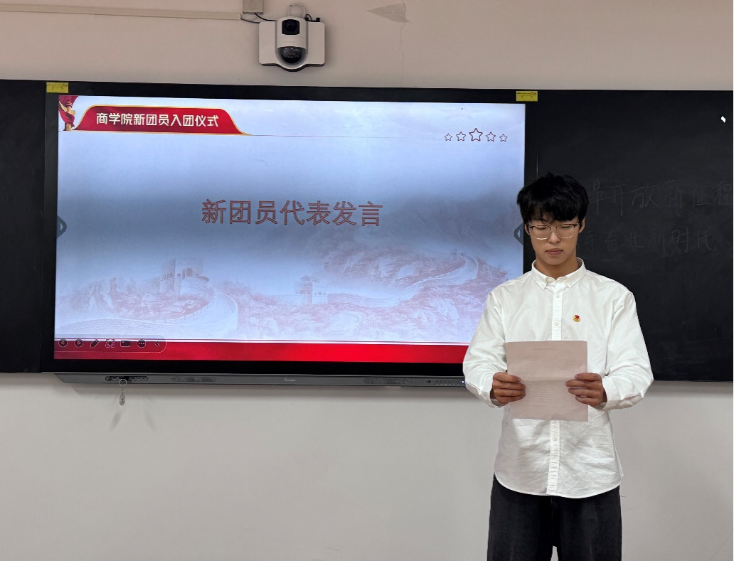 秦子昂作为新团员代表发言,他表达自己作为一名团员的光荣和职责,并呼吁其他团员一道携手并进、团结拼搏,为实现共青团的宏伟目标而奋斗。