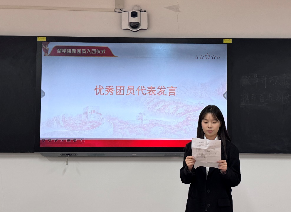 刘怡欣作为优秀团员代表发言,她表明加入共青团的重大意义,希望新团员能够继续发扬团组织的传统,以更高的标准要求自己,努力学习,为团组织的发展贡献自己的力量。