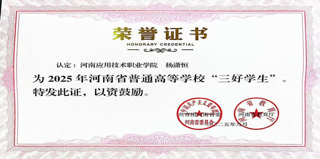 杨潇恒始终明白,作为一名学生,学习是他的首要任务。他始终保持着刻苦钻研的学习态度,勤奋努力不断提高自己的学习能力和综合素质,在课堂上他认真听讲,积极回答问题,与老师和同学们进行互动交流。在学习专业知识的同时,他还注重培养自己的实践能力和创新精神积极参加各种竞赛和实践活动,如“挑战杯”大学生创业计划竞赛等。他通过这些活动不仅提高了自己的专业能力,还锻炼了自己团队协作能力和解决问题的能力。他始终坚信着“成功在于积累,进步源于坚持”。