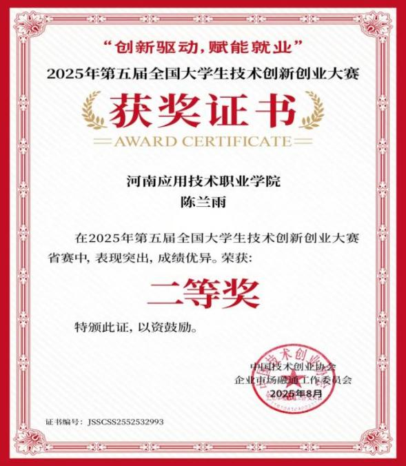 2025年全国大学生技术创新创业大赛省赛二等奖