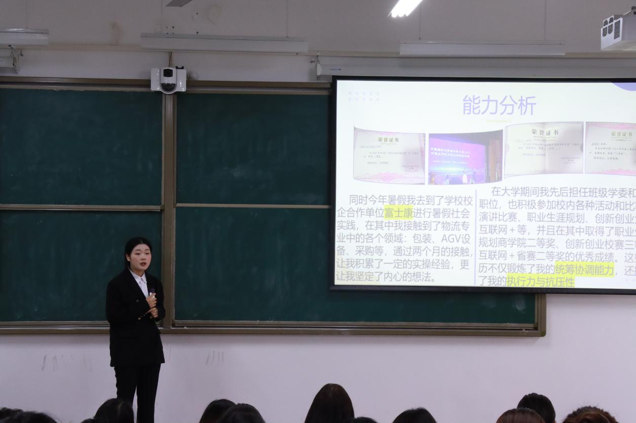 决赛现场分为职业规划展示、评委提问、现场点评三个环节。选手们通过 PPT 展示,从自我认知、职业分析、目标设定、实施计划、评估调整等方面,清晰呈现了个人职业生涯规划蓝图。有的聚焦电子商务、市场营销等热门领域,结合行业趋势制定精准发展路径;有的立足自身专业优势,规划了创业或深耕专业领域的职业方向,展现出扎实的专业素养和清晰的职业思考。