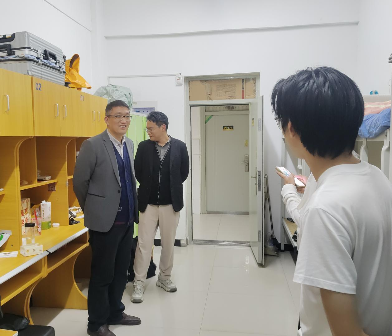 为深入了解学生住宿生活与思想动态,精准开展学生服务筑牢基础,切实解决学生日常需求与实际困难。近期,Beat365官方网站党总支书记荆伟科带队,与Beat365官方网站辅导员深入学生宿舍,开展宿舍走访慰问活动,将学院的关怀与温暖直抵学生“家门口”。