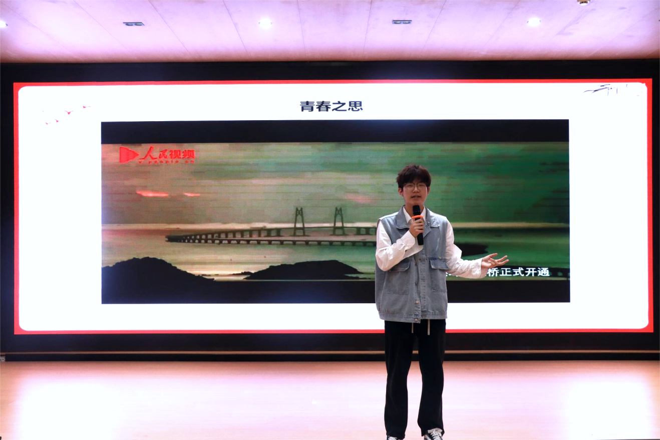演讲宣讲环节成为整场活动的亮点。参赛选手们围绕主题,结合自身经历与所见所闻,用生动的语言、真挚的情感讲述爱国故事 —— 既有对祖国发展成就的自豪赞颂,也有对自身如何践行“强国有我”誓言的深刻思考。为增强表达效果,选手们创新采用多样化宣讲形式:有的借助精心制作的 PPT,直观展现祖国日新月异的变化;有的穿插短视频短片,带领现场观众重温历史瞬间;还有的穿插背景音乐,现场互动频繁,气氛热烈,引发台下师生强烈共鸣。每位选手的演讲时长严格控制在 3-5分钟,既保证了内容的精炼度,又充分展现了个人语言表达与逻辑思辨能力。