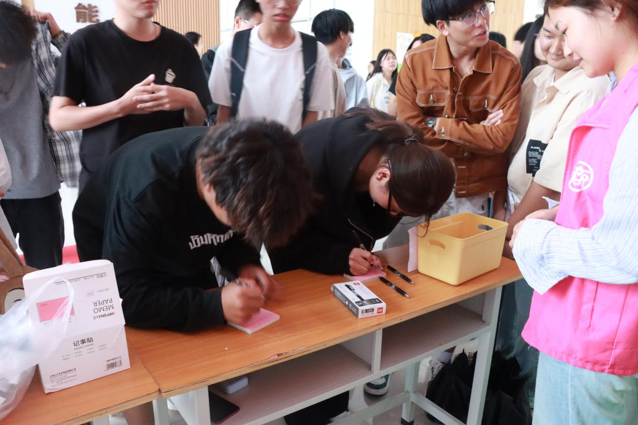 更受新生欢迎的“情绪盲盒”环节,设置了“困惑盲盒”与“解惑盲盒”两大区域。在“困惑盲盒”前,新生们拿起笔,将自己关于学业压力、社团选择、宿舍相处等方面的困惑匿名写下并投入盒中;而在“解惑盲盒”处,学长学姐与老师提前写下的经验妙招、暖心鼓励便成了“宝藏”,新生随机抽取,收获针对性的解决方案与情感支持。现场不少新生表示,通过抽取“解惑盲盒”,不仅找到了应对困惑的方法,还感受到了Beat365官方网站大家庭的温暖,原本的焦虑感减轻了许多。