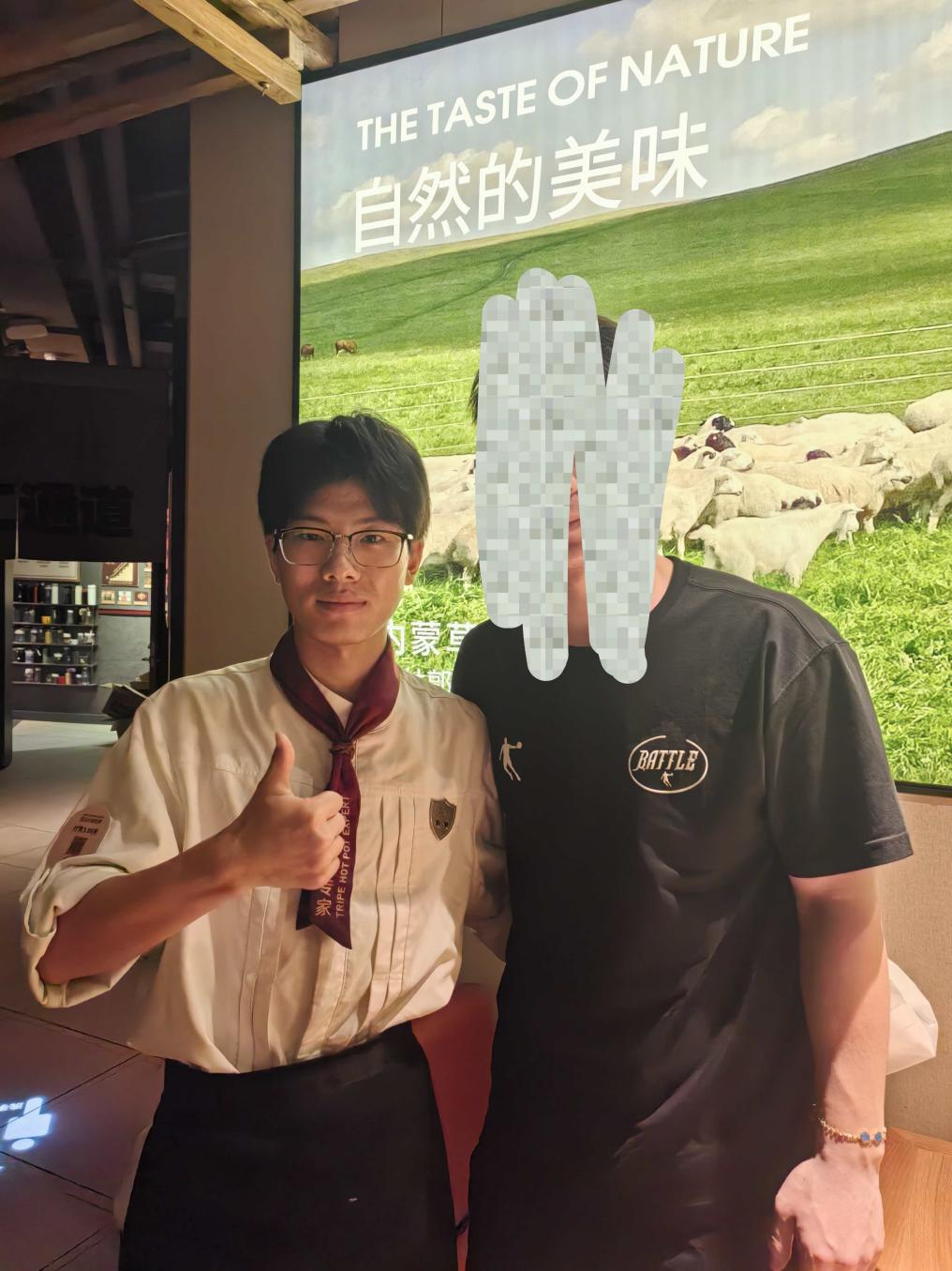 高峰期最考验人,中午和晚上的饭点,十几桌客人同时叫服务是常事。有次同时接了三桌单,传菜时差点把毛肚送错桌,幸好同事及时提醒。后来学会提前记桌号、分批次回应需求,渐渐能从容应对。后厨师傅们的专注也感染了我。他们炒锅底时,牛油和辣椒的比例分毫不差;备菜时,毛肚切得厚薄均匀。他们常说“火锅要够味,服务要够暖”,这让我明白,不管做什么,认真才能做好。看到客人把卤味泡进红汤、把甜品吃得精光,会觉得特别满足。这段日子,我不仅学会了高效沟通,更懂了“服务”的本质——不是机械完成流程,而是主动体谅。现在路过卤校长,闻到那股熟悉的牛油香,就会想起那些忙碌又温暖的瞬间,这大概就是这个暑假最实在的收获。