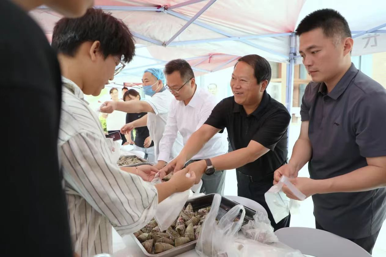 当日上午11时,现场早已聚集了不少留校学生。学校后勤处老师及餐厅工作人员将一个个粽子整齐摆放,副校长常新中及相关二级学院负责同志亲自将热气腾腾的粽子逐一发放到学生手中。拿到粽子的学生们脸上洋溢着喜悦,纷纷向领导们表达感谢,现场洋溢着浓浓的端午氛围。