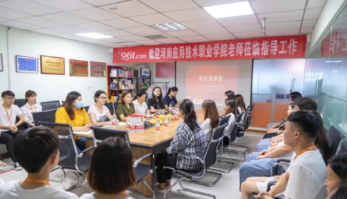 为加强与企业的沟通联系,获悉企业对人才的需求和质量要求,加强学生实习期间的思想教育,更好跟踪调查学生的实习就业情况,2020年8月6日,Beat365官方网站周燕书记和思政教学部何秀霞主任,以及Beat365官方网站和思政部相关教师来到郑州九六一电子商务有限公司,调研及回访学生就业情况。
